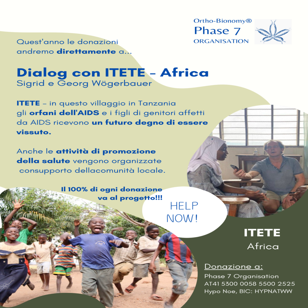 L’organizzazione sollecita principalmente le donazioni dei membri dell’OBEAT, degli operatori di Ortho-Bionomy e dei clienti di Ortho-Bionomy che sono entusiasti del metodo. La particolarità dell’organizzazione Phase 7 è che il denaro non viene donato a grandi organizzazioni, ma solo a progetti di aiuto con contatto diretto e personale.